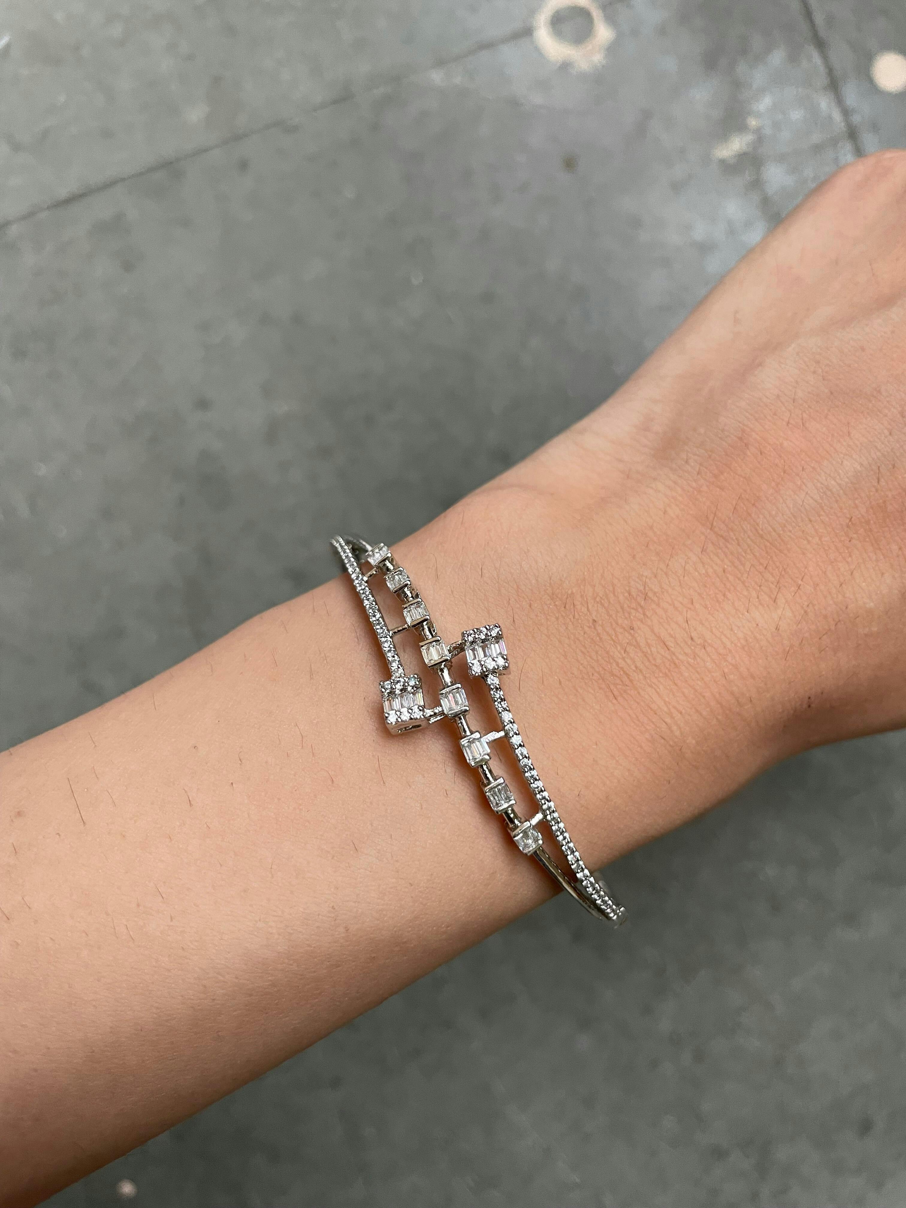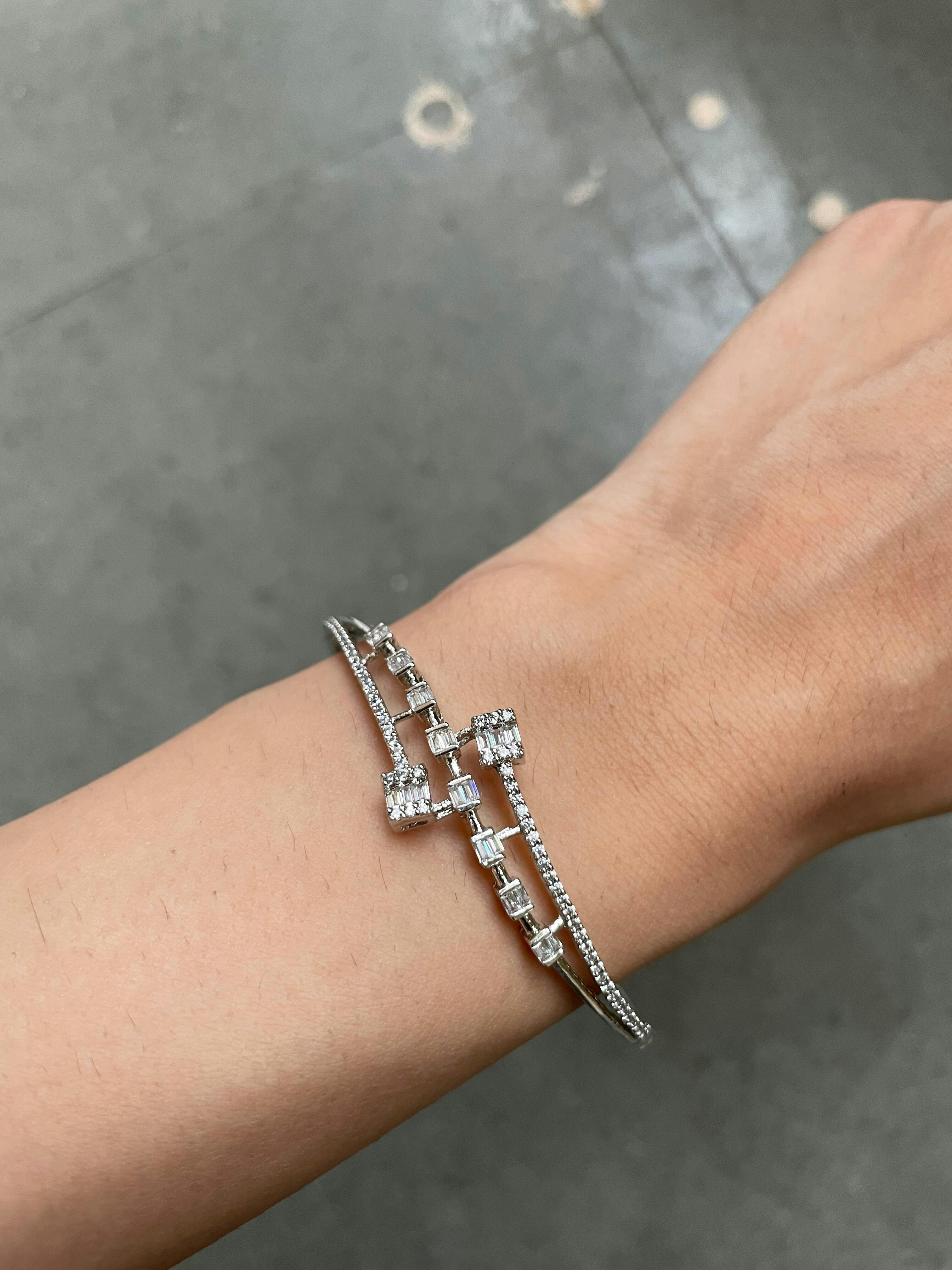 Luxaore Latest Design Pure 92.5 Sterling Silver Bangle Adorned with Shiny Cubic Zirconia AAA+ Quality American Diamonds – Perfect for Special Events, Parties, Weddings, Casual, and More.